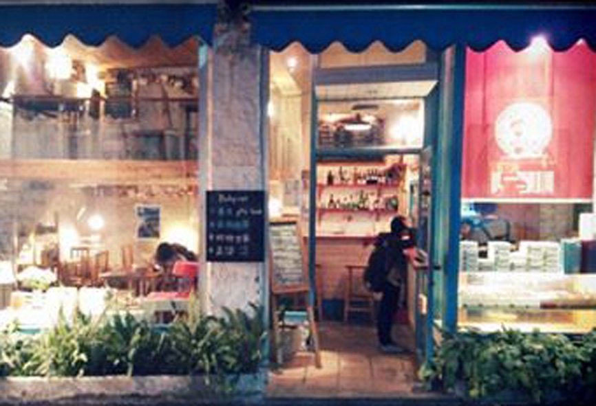 全白色粉刷、黑色店名超顯眼、黑色門(mén)框+玻璃、棒!