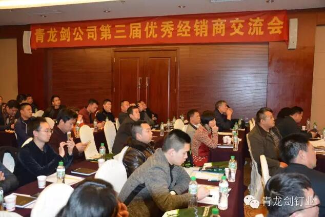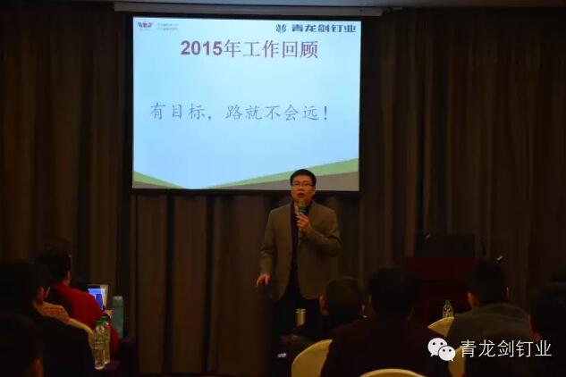 公司董事長馬志華對全國經銷商的到來表示誠摯的感謝。——“感謝各位經銷商來參加2016年度青龍劍公司第三屆優秀經銷商交流會,歡聚一堂共同探討青龍劍釘業發展大計”。